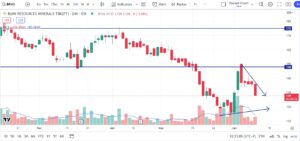 BRMS (last 128) – SELL. Tertekan dari flip level 148. Target 132.