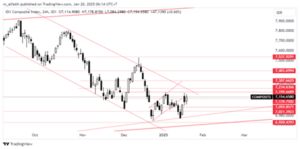 Indeks akhir pekan yang lalu menguat mendekati kembali resistance 7200-7300 yang merupakan batas berakhirnya pola downchannel pola sejak Sep24). Jika berhasil menguat maka batas resistance berikutnya ada di sekitar 7350-7400. Saat ini masih dalam pola konsolidasi support ada di 7070, 7020, 6950.