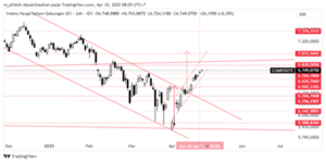 Indeks kemarin naik, dalam transaksi sempit, volume moderate dan momentum semakin melambat. Kemungkinan indeks masih naik menuju target teoritis, namun waspadai kemungkinan koreksi.