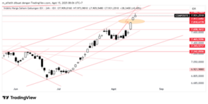 Indeks kemarin sudah capain 7973, dan terjadi koreksi intraday. Ada kemungkinan hari ini akan terjadi koreksi, dengan batas gaps yang terjadi dalam dua hari terakhir sebagai batas kritis perubahan trend