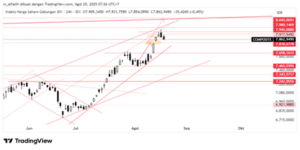 Indeks kemarin tertekan sesuai perkiraan. Akan uji area kritis, gap dan trendline di 7790 lalu 7725. Jika tembus maka akan menjadi trend turun jangka panjang. Sentimen bearish ini akan berkurangh jika indeks mampu naik diatas 7900