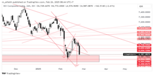 Indeks kemarin mengalami tekanan jual yang kuat, melanjutkan pola down channel sejak Jan25. Kemungkinan akan tertahan di area pivot 6450-6560 (pola sejak Jan2021). Arah selanjutnya sangat ditentukan pola yang terbentuk di area ini.