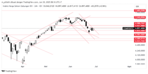 Indeks akhir pekan yang lalu menguat diluar perkiraan. Dan saat ini sedang uji trendline pola downchannel, dan melihat regional ada kemungkinan terjdi breaks out. Jika breaks out, maka potensi kenaikan ke 7000-7100 kembali.