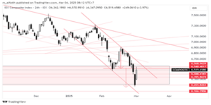 Indeks kemarin menguat melampaui gap yang menjadi support penting. Perubahan dari downchannel (pola sejak Jan25) tergantung kemampuan index tembus dan bertahan di atas 6630. Batas koreksi normal di 6450.