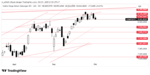 Indeks tertekan dan akan uji support pola konsolidasi di 8025. Yang jika tembus maka terbentuk pola double top, dengan kemungkinan pelemahan ke 7920. Resistance di 8065-8130. Support di 7920-7980-7840.